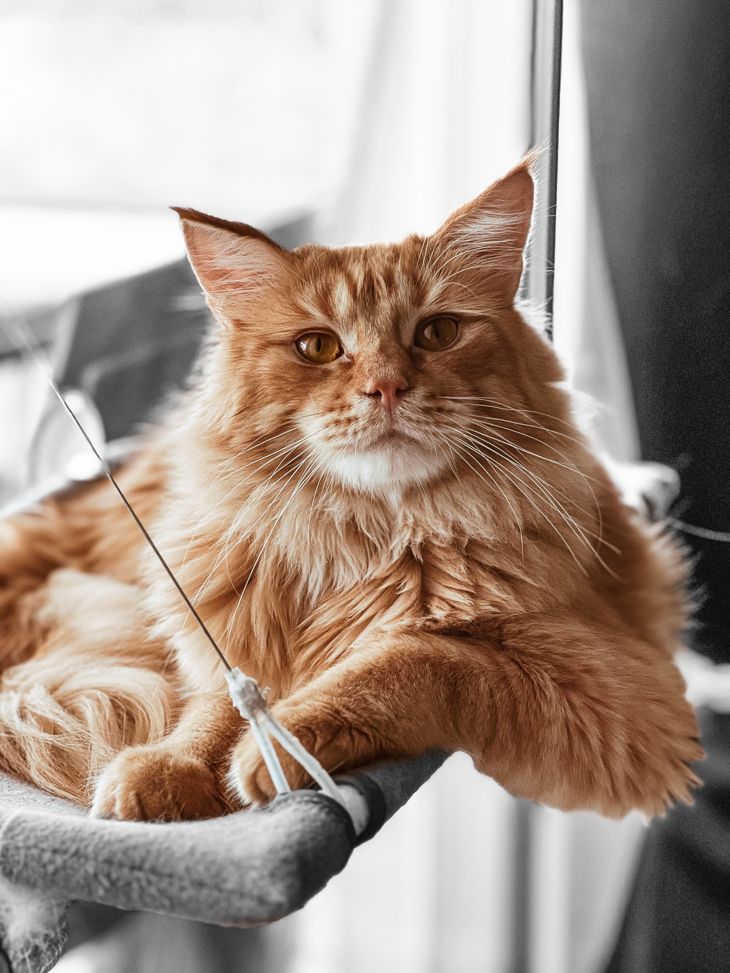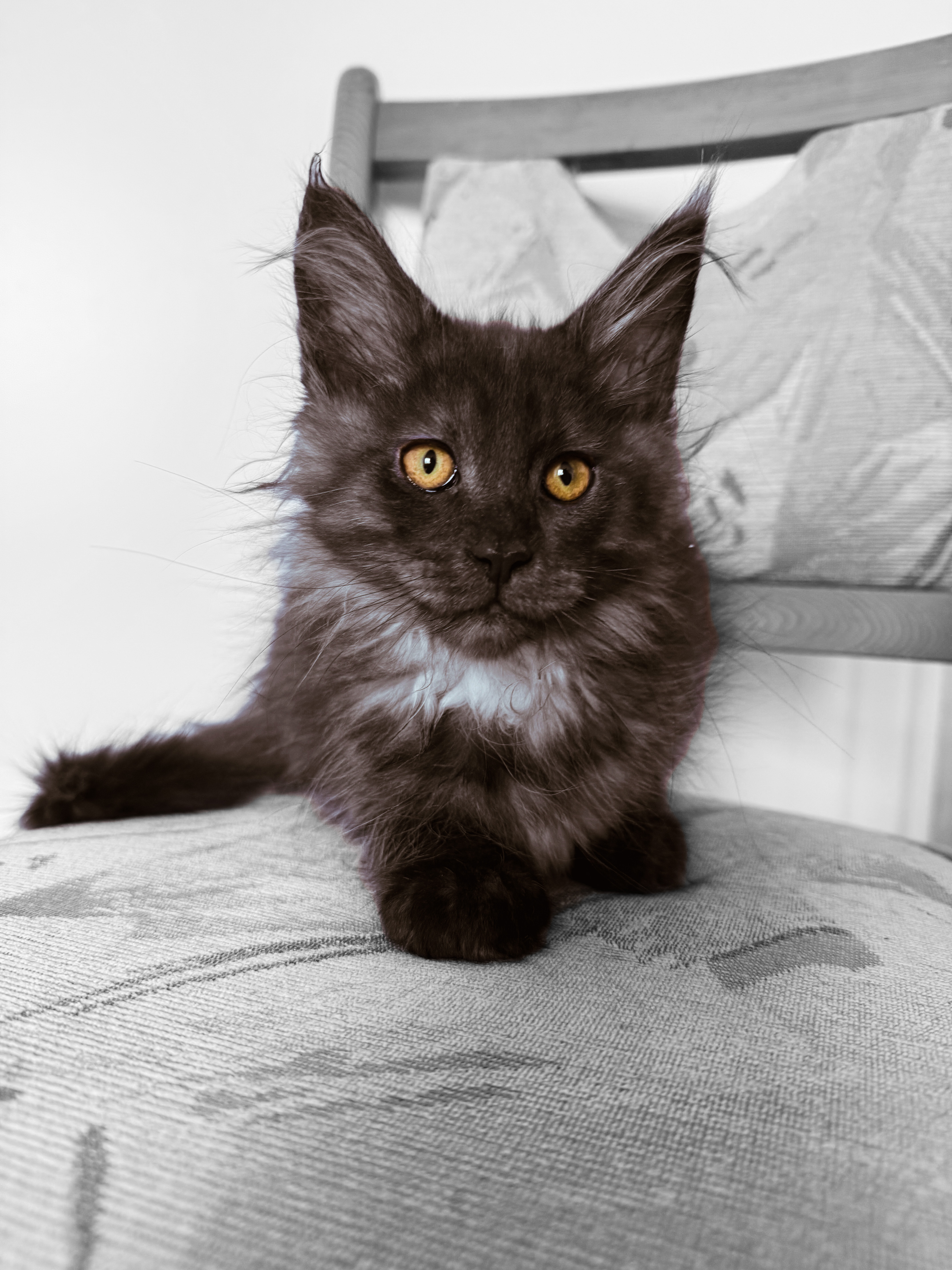 Salem was born on September 19th, 2024. We got him from a Maine Coon breeder. It was the first time for me to adopt an animal from a breeder but she was very sweet and we were allowed to take as much time as we wanted during the viewing. She had several kittens but Salem was the only one hiding under the sofa. When he dared to come forward he started to lick my hand and from that moment on I knew that Salem would be our new cat. He and the other two made friends very quickly and you could say they are like the three muscle animals. 3 hearts one soul.